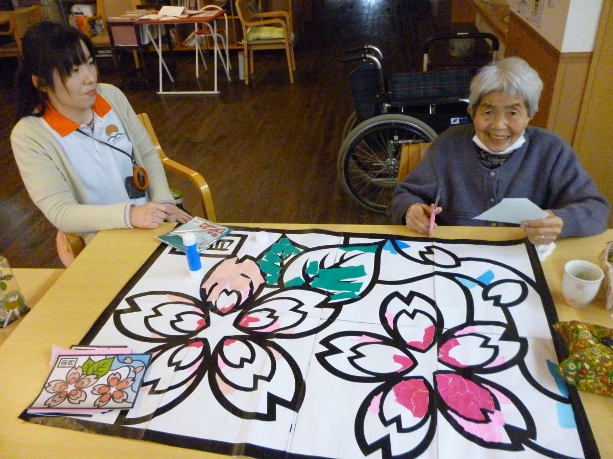 なにやら製作物を作っていらっしゃるようです!!春に向けて桜の製作物のようです✿