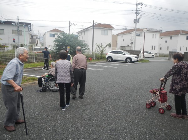 広い駐車場を端から端まで、ゆっくりと歩き、秋の陽気を体で感じられていました。
