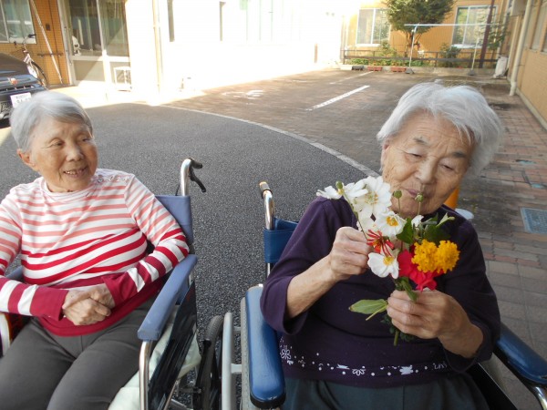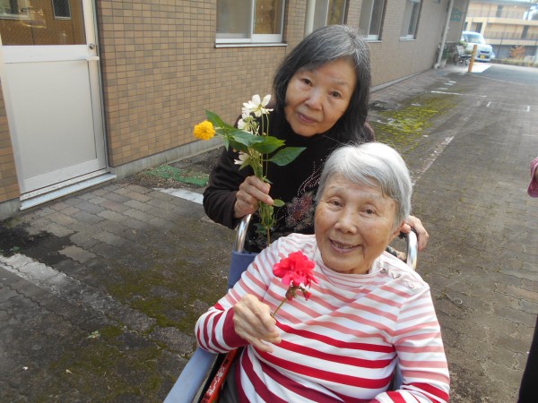 色鮮やかな花を摘んでニコニコ笑顔になりました~