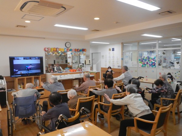軽快な音楽に合わせ体を動かし、筋力の維持向上のため、一生懸命頑張っていました。