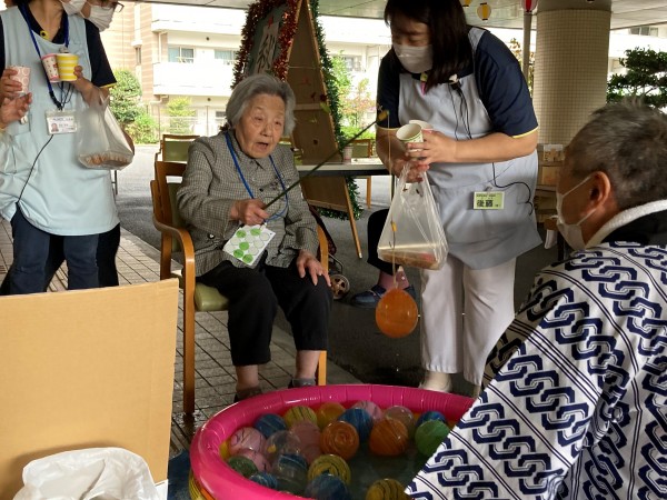「焼きそば」で小腹を満たした後は「ヨーヨー釣り」にチャレンジです!