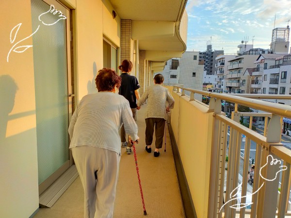 ご婦人お二人ともベランダ散歩♪
