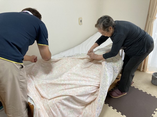 週に一度のリネン交換、いつもスタッフと一緒に頑張っています(^_^)v