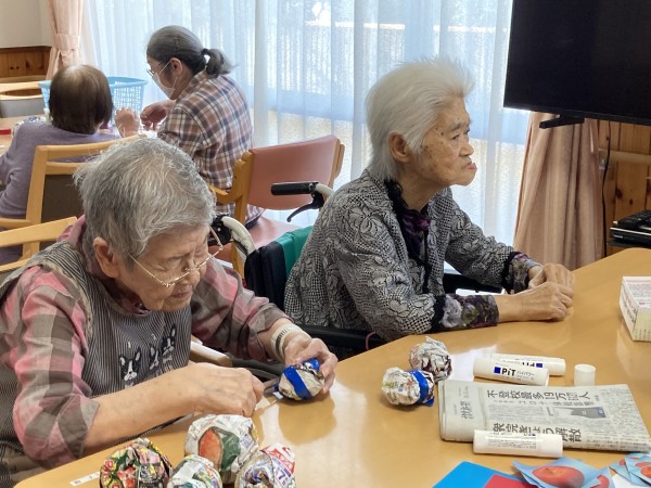 その道具作りをレクリエーションで皆さまに手伝って頂きました♪