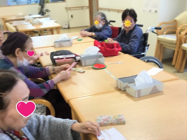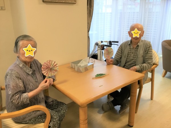 先日レクリエーションとしてミニ扇子づくりを行いましたので、