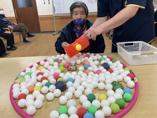 何個もピンポン玉を持ち上げられた利用者様は、嬉しそうでした。(≧▽≦)