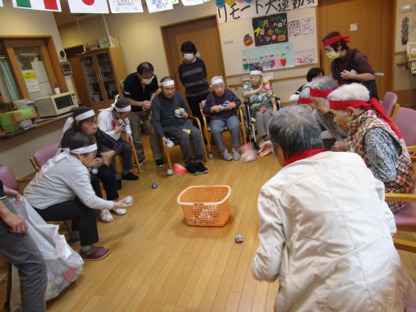 次は玉入れです。ここから皆様紅白のハチマキをして気合い十分です(^_^)v