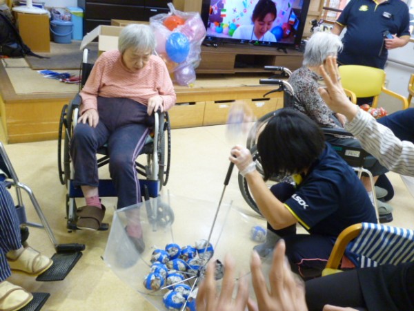 傘に玉入れ~