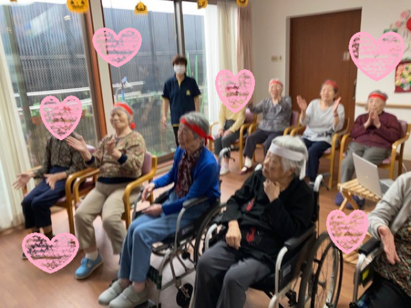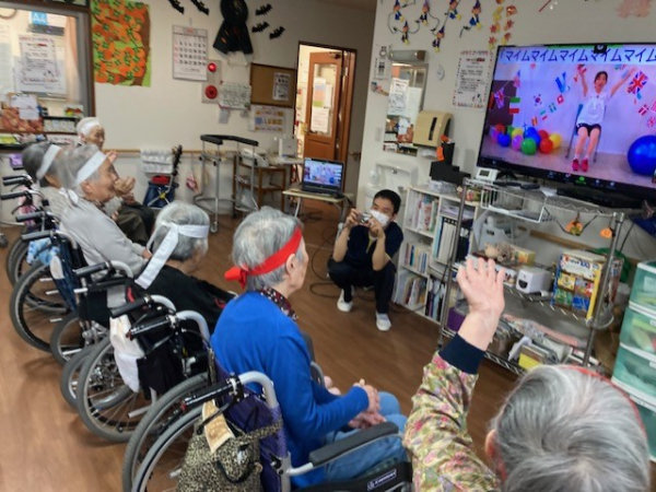 インストラクターの動きに合わせて、右へ左へ体を動かし、手をたたきダンスを楽しみました!(^^)!