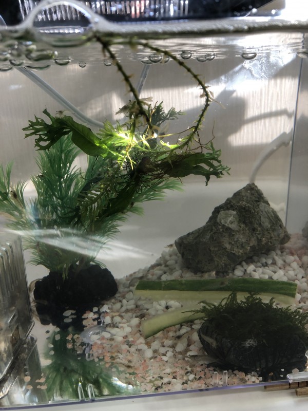 以前からめだかとえびは飼育していましたが、また、たくさんのえびが仲間入りし、水槽が2個となりました。