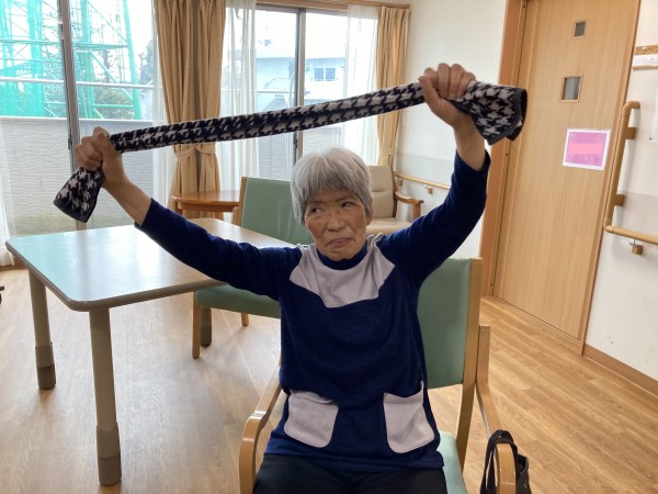 皆様、個人のタオルを持参し、無理のない範囲でタオル体操を楽しまれました。