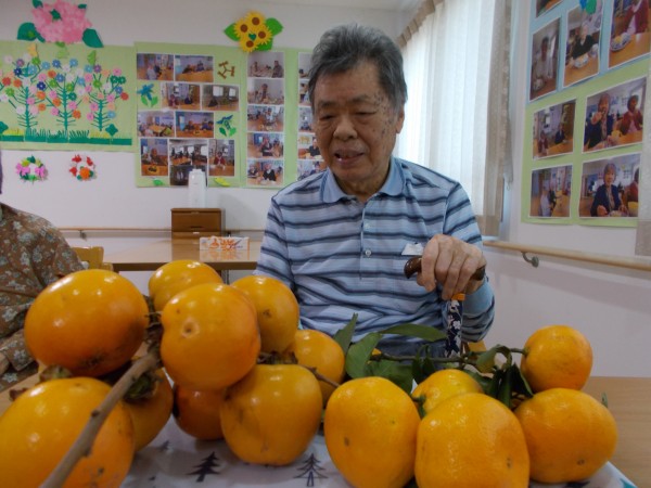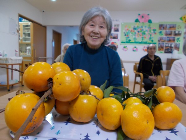 近隣のスタッフが、庭の柿とミカンをもってきました。