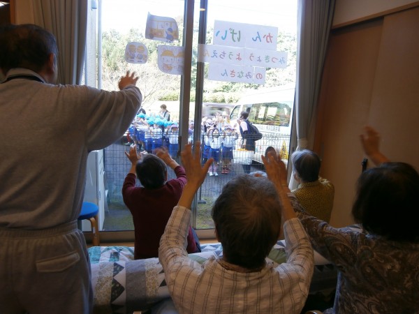 駐車場に並んで歌を歌ってくれたり手を振ってくれたり…(^∇^)