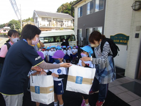 例年だと園児さんはホームの中を見学したり、入居者様と一緒に手遊びや歌を歌って一緒に過ごすのですが、
