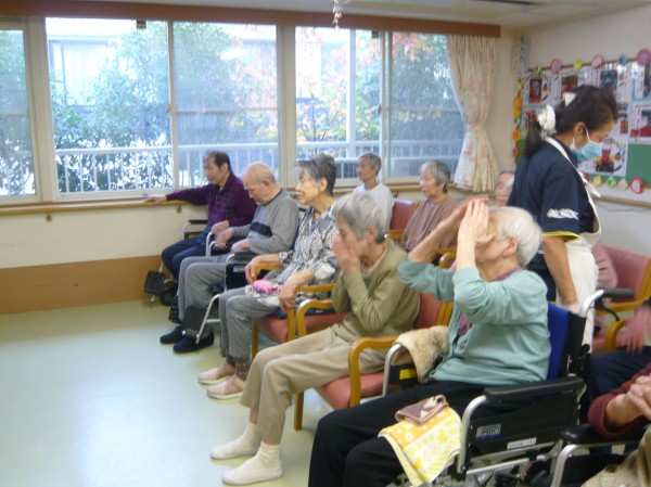 先生の元気な声に圧倒されながらも、利用者様も