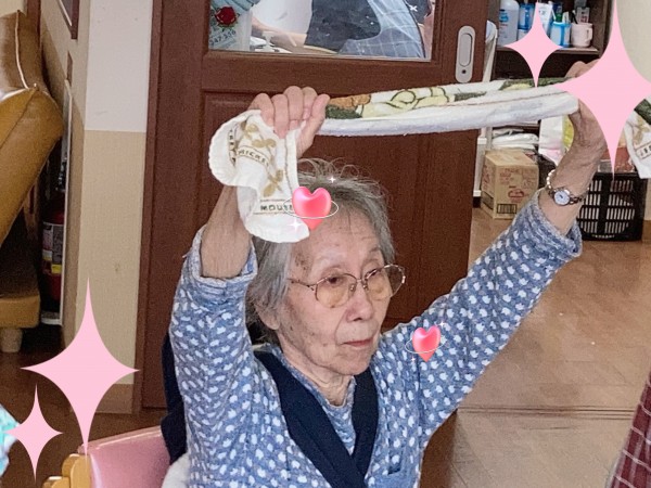 今回は読んで字のごとく『タオル体操』を行いました。身近にある道具を使うので、誰でも出来る体操ですよね。