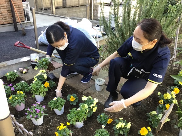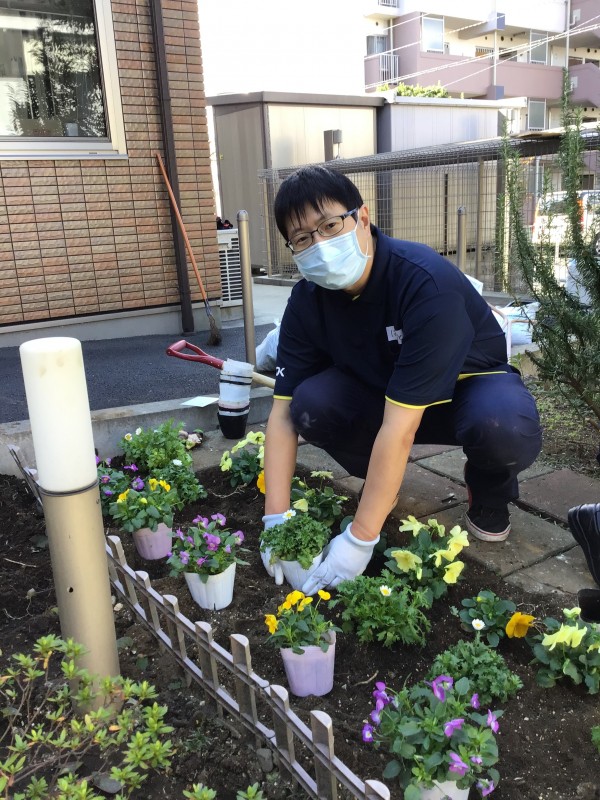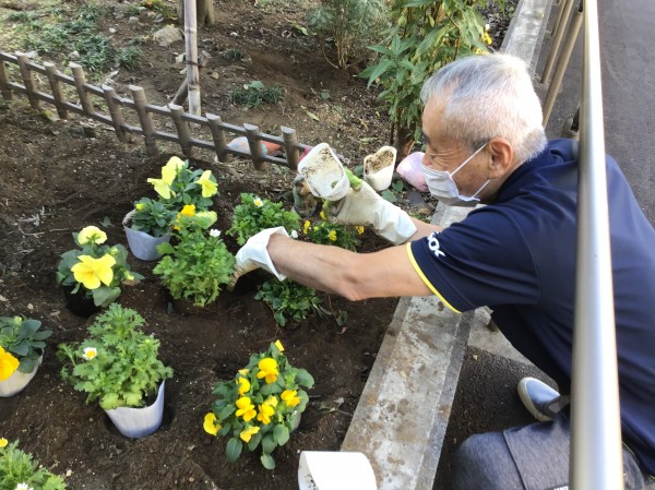 「アミカの郷ちとせ」11月に入って冬仕様の花壇に植え替えをしました。
