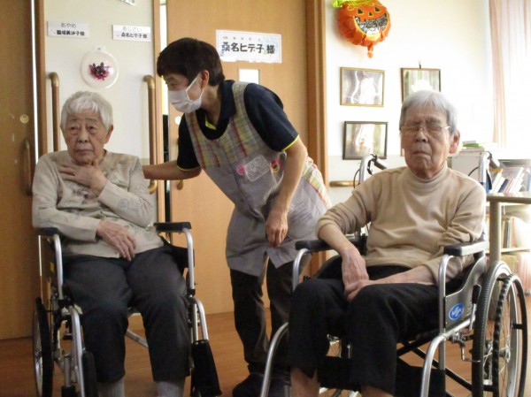 職員と一緒に参加され、体操が難しい場合は職員がお手本になっておこないました。