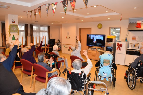 リモートでALSOK介護の事業所をつないでモニターで講師が進めてくれました。