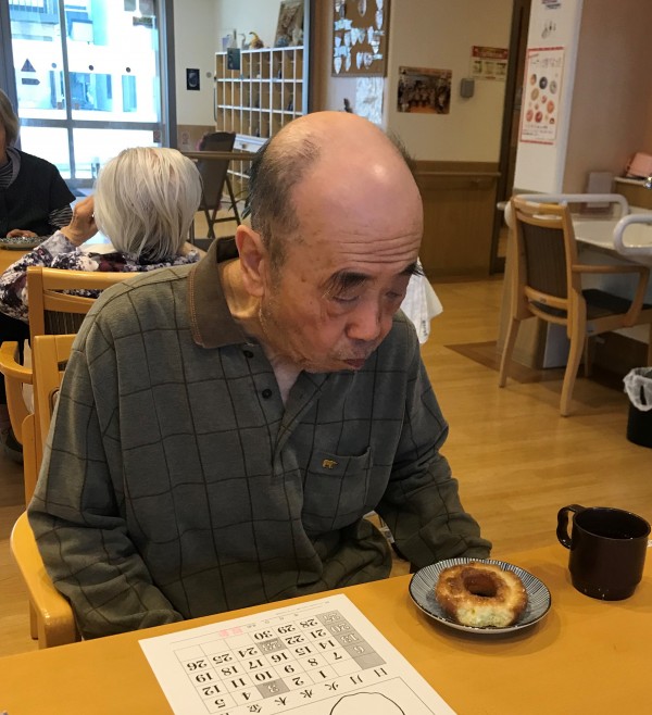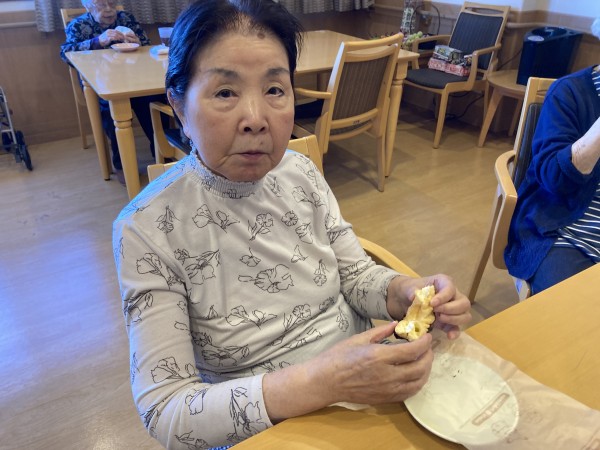 ホーム長「ドーナッツは手で持って大きな口でかぶりつくと美味しいですよ。バクッと」