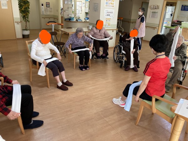 初めて、タオルを使って体操をおこないました。