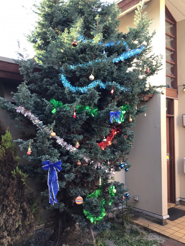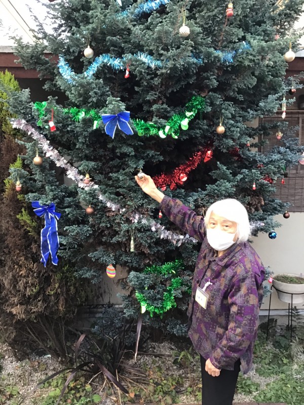 毎年ご利用者様に玄関横にある木に飾り付けをしていただいています。