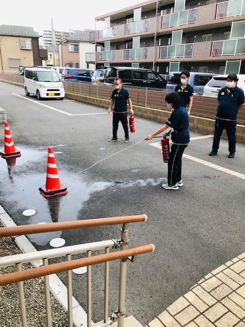 消火器を初めて触るスタッフもいたりしました。