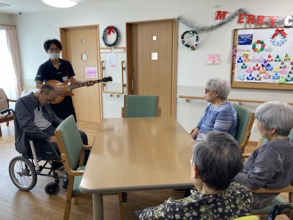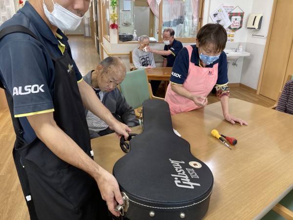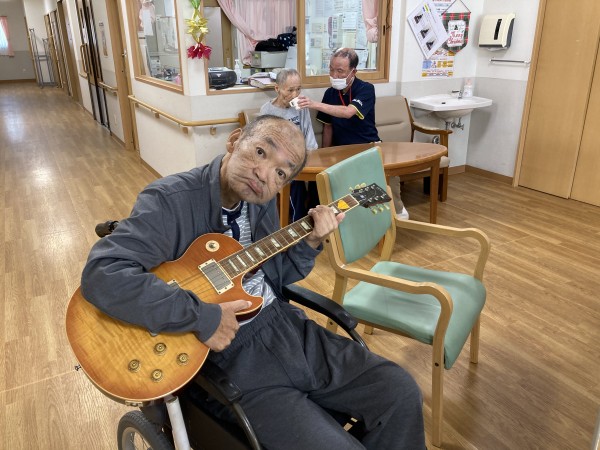 M様、他スタッフ利用者様もお洒落なギターにご満悦♪
