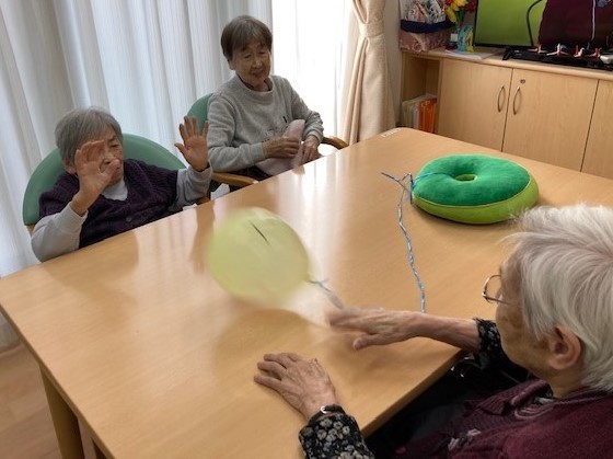 グループホームみんなの家・墨田で「風船バレー」の軽運動レクリエーション