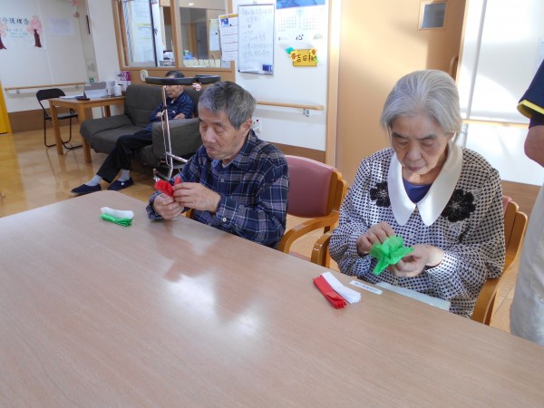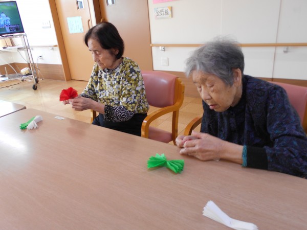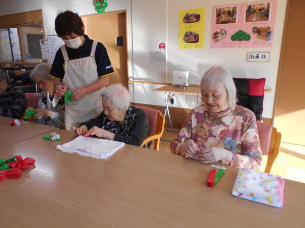 赤、緑、白のクリスマスカラーのお花紙を作って頂きました!!!