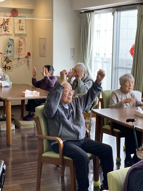 いつものお昼時、職員さんが食前体操を準備していたら・・