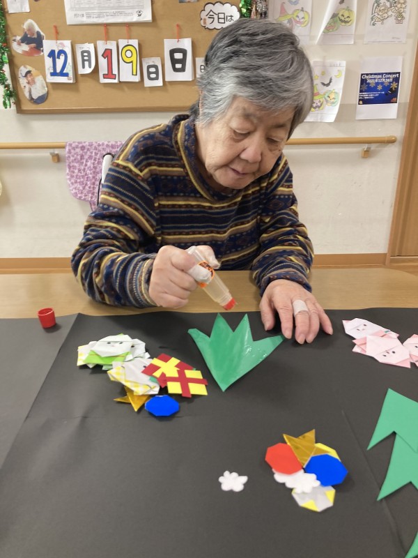 ツリーの周りや星をきれいに貼ることが出来ました!