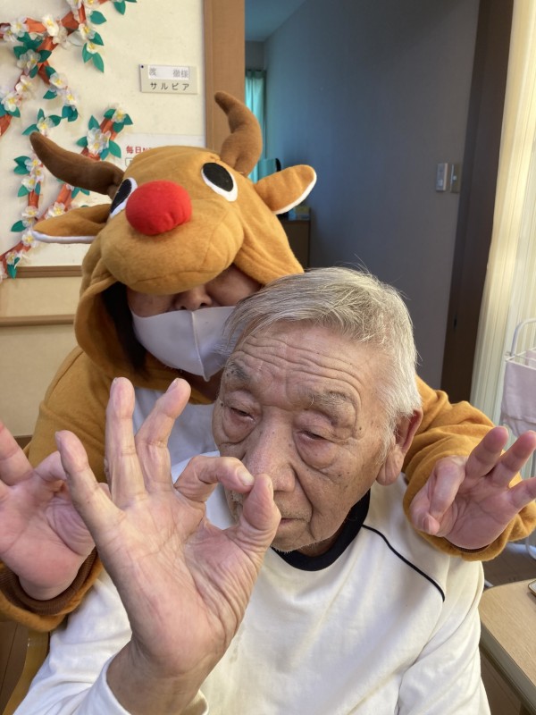 サンタさんにトナカイも来てくれて皆様に楽しんで