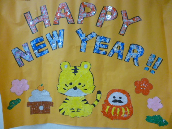 皆さんと一緒に寅の切り絵を作りました。