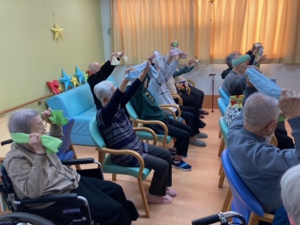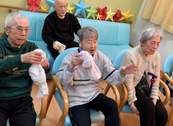 グループホームみんなの家・墨田で、12/29日に本年最後のリモートで、トレーナーによるタオル体操を行いました。