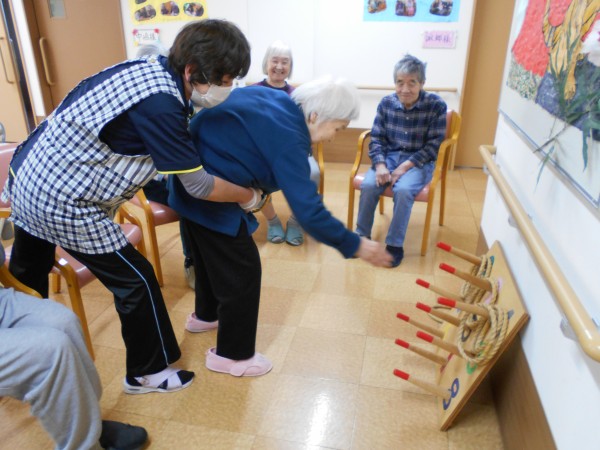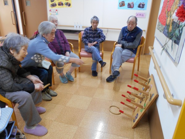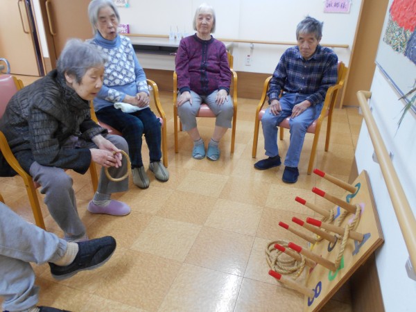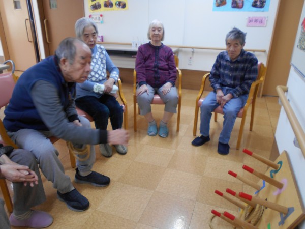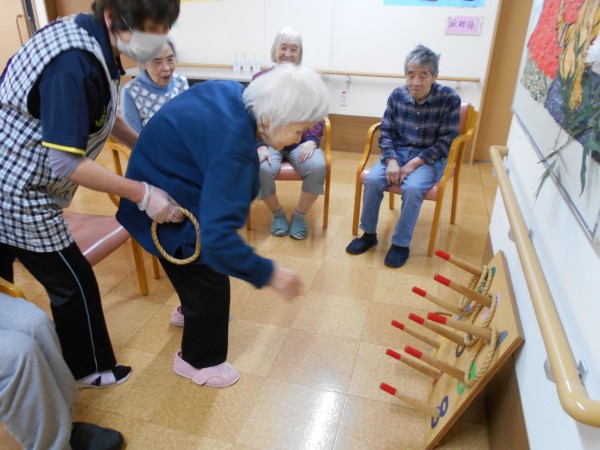 桜フロアでは、皆様で盛り上がろうとスタッフと一緒にかるた&輪投げを楽しみました!!