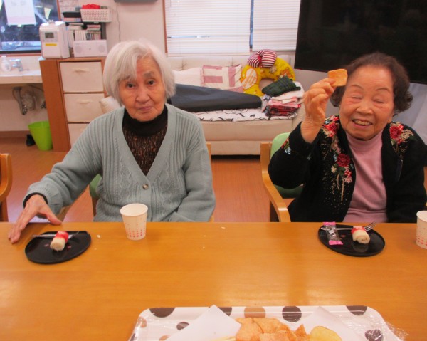 今日は、紅白のおまんじゅうに新年会のおつまみ!