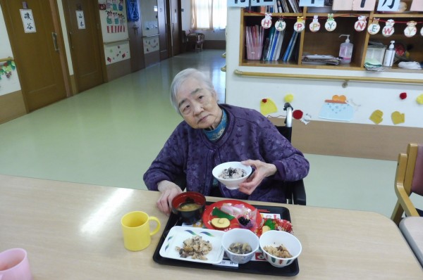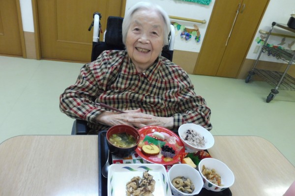 利用者様全員、おせちを見て「美味しそう」と、笑顔でおせちを召し上がってくださいました。