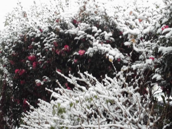 寒さに耐えて咲く「さざんか」にも