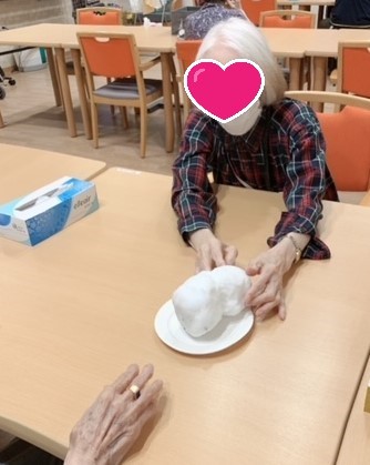 アミカの郷成増では、皆様に雪に触れていただきたく小さな雪だるまを作り紙皿に置き触っていただきました(^▽^)/