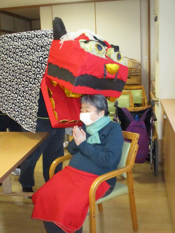こんにちは!デイサービスセンター遊 西東京です! 皆様のご健康を祈願し獅子舞を踊り、お一人づつ獅子と一緒に写真を撮りました!