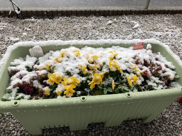 こんにちは! グループホームみんなの家川崎野川南台です! 野川に雪が降りました~(^^♪ 6日のお昼頃からしんしんと降り積もり、 お花も、イルミネーションのフラミンゴも雪化粧です(^^)/