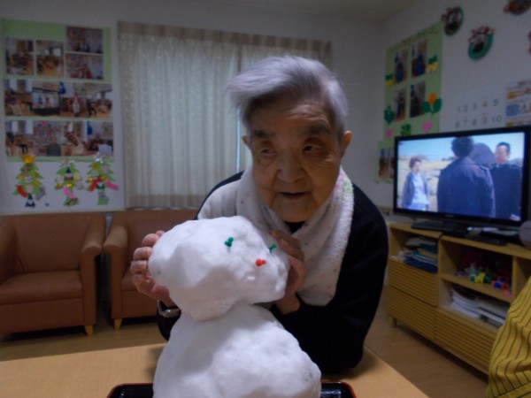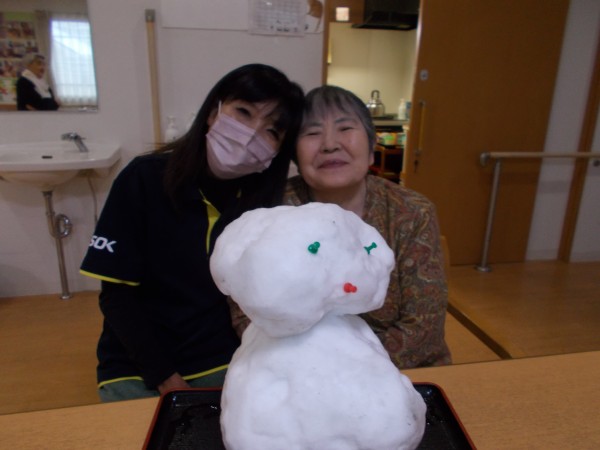 先日の大雪の日に職員が雪だるまを作って入居者様と室内で鑑賞しました。