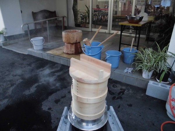さあ! 蒸しあがったご飯を臼に移して・・・