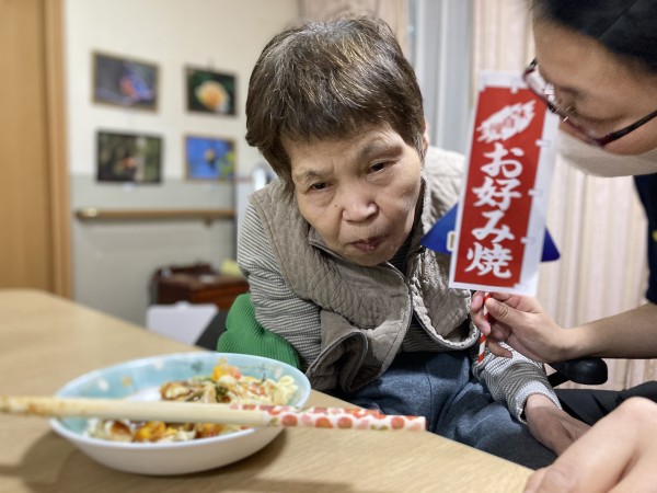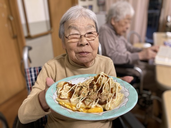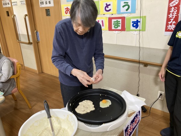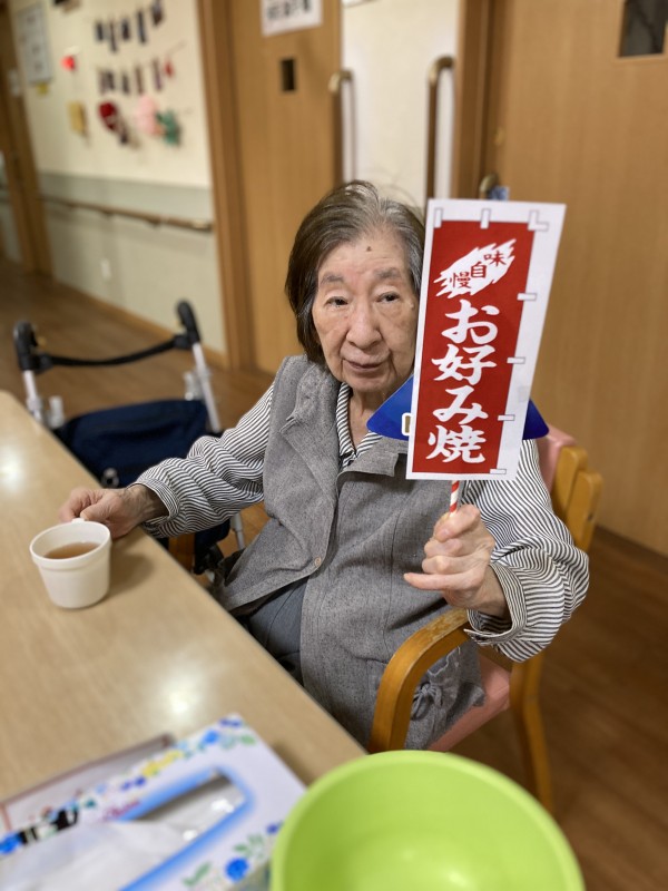今日は皆様にお手伝いいただき、お好み焼きを作りました。