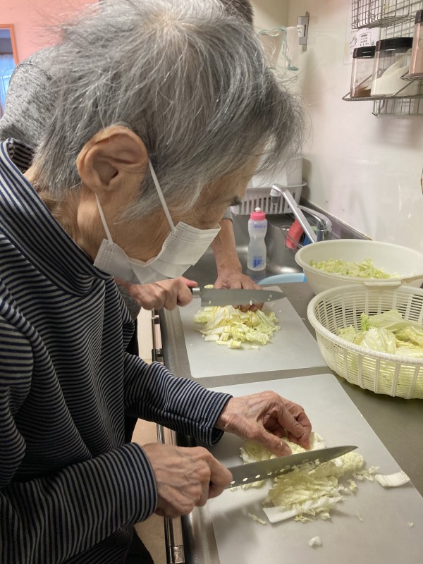 白菜や野菜を刻むのをお手伝いして頂きましたー!