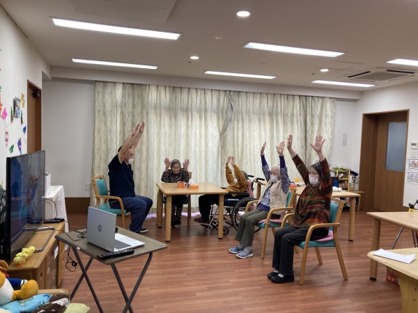 1/21 14時から岡庭先生が来訪してALSOKあんしんヨガをリモートで行いました。