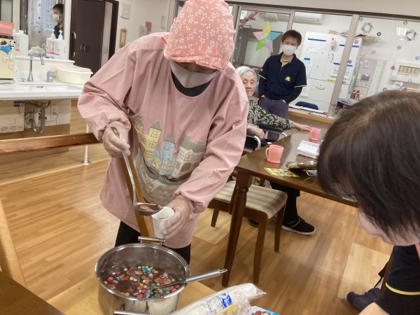 寒い日が続いていますが、お汁粉を食べて温まって、ご入居者様も職員も、今年1年元気に過ごしていこうと思います(*^▽^*)