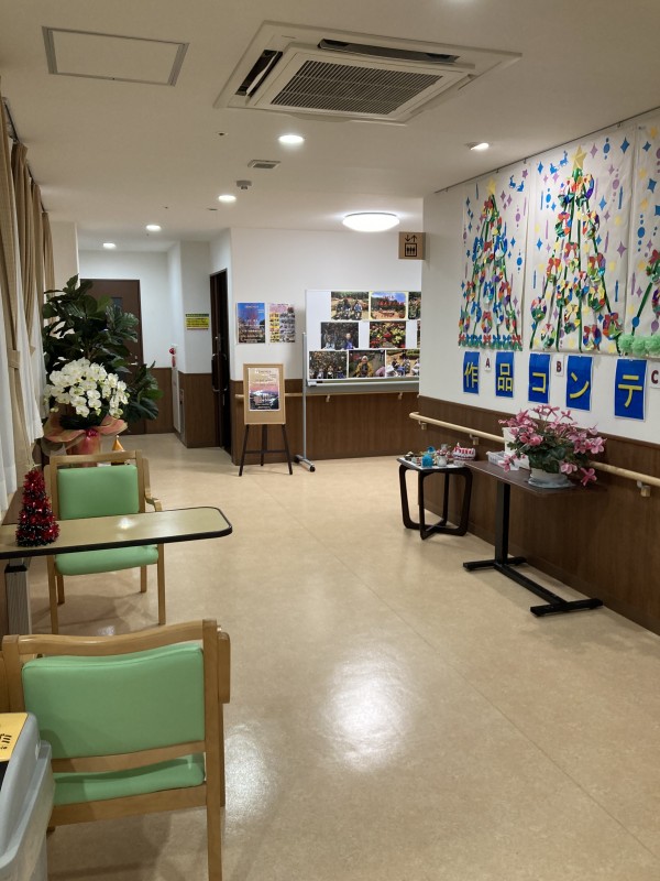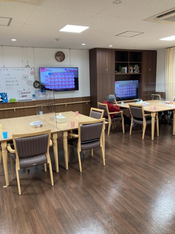 各階に食堂兼機能訓練室があり大型テレビが2台設置されています。
