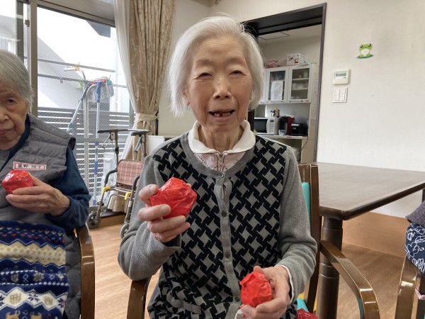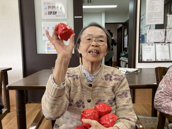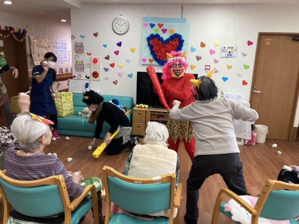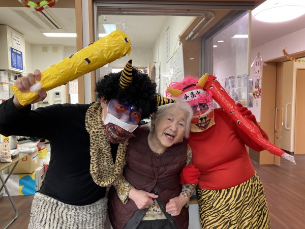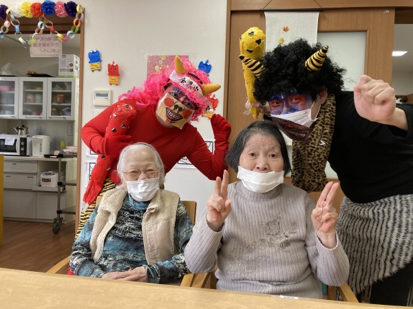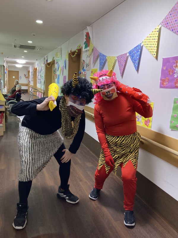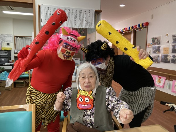 節分は「みんなが健康で幸せに過ごせますように」という意味を込めて、悪いものを追い出す日。だそうです。ご利用者様もスタッフも大笑いして豆まき(新聞紙を丸めて作った豆ボール) 今年も楽しく元気に過ごしましょうね♪